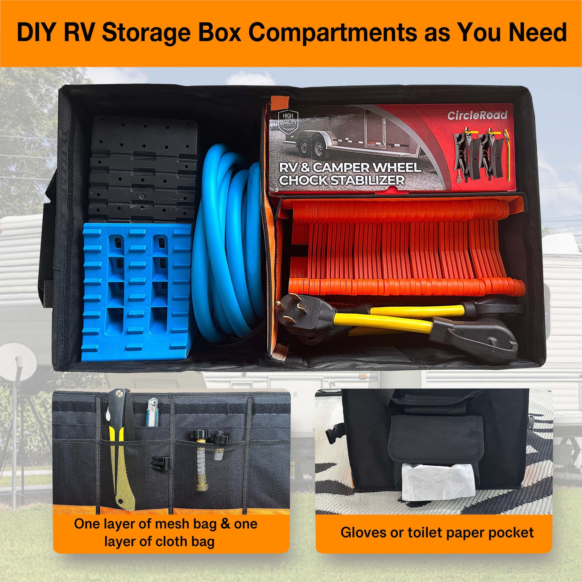 - High-quality Material: Our CircleRoad car organizer is made from reliable waterpoof 900D Oxford cloth, which is scratch-resistant. Thickened PP board can keep the RV storage organizer from deforming in humid or hot environments. Make your RV travel more convenient!