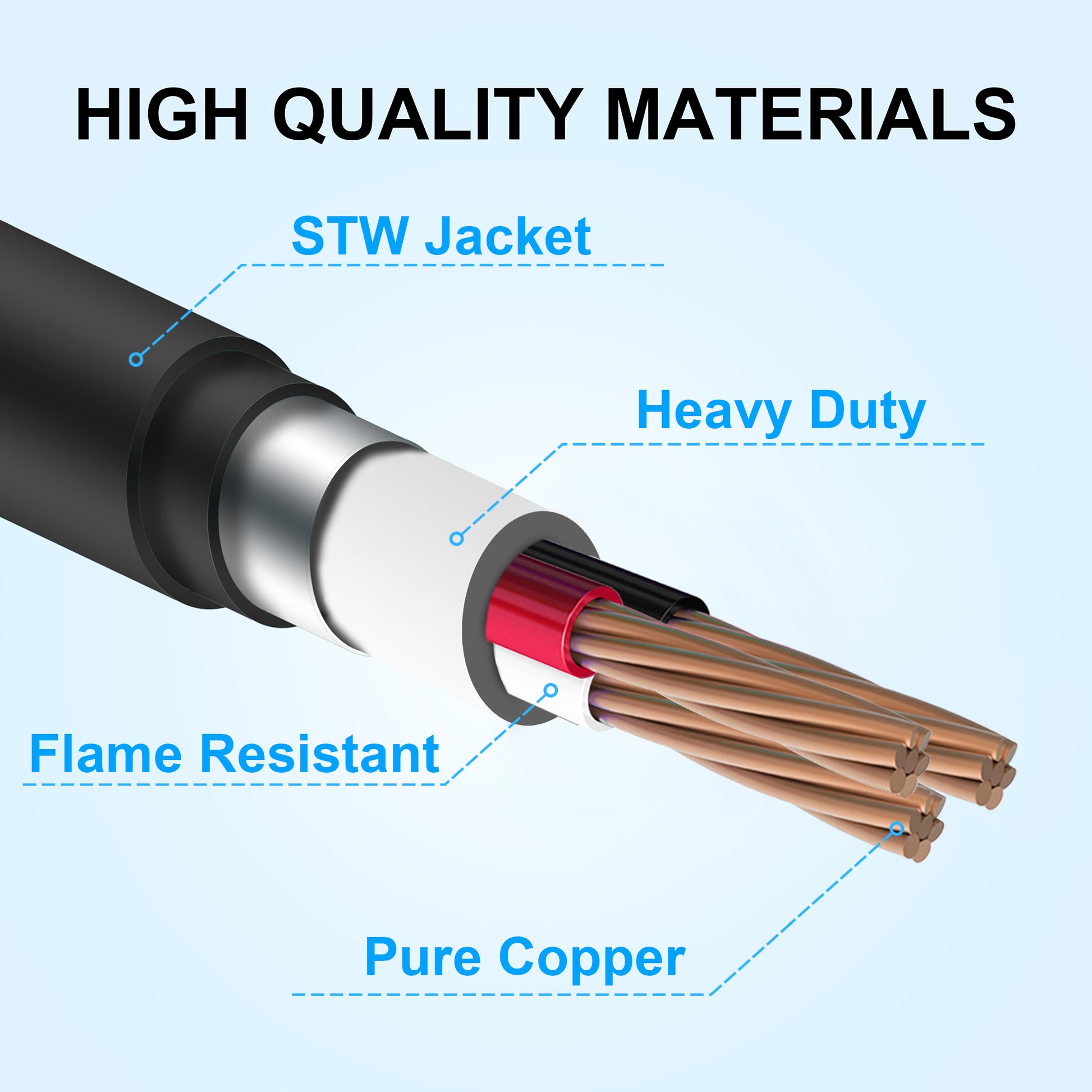 - Heavy Duty: Heavy duty molded plug, copper wiring coated, flame retardant, UV-resistant, STW indoor/outdoor water resistant jacket